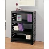 Add a contemporary touch to your home décor with the stunning Devine Collection 3 Tier Shelf. This bookcase will complete the room and gives you an elegant display case. Made of sturdy MDF materials, this furniture piece is designed to withstand years of daily use. This shelving unit provides a lovely home for books, magazines and other decorative items. The slatted frame adds dimension and style to the piece. A great way to store and organize your daily necessities, this shelf is perfect in the kitchen, office, living room or den. The rich black finish adds sophistication and style.