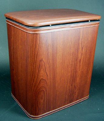 Our vinyl hampers include exquisite wood grains accented with matching wood grain trim or with very classy metallic gold or silver. These hampers are perfect for various applications including ladies' personal apparel items. These units have a very distinguished look and elegant presence. The wood grain is amazingly matched to the popular wood grains available today in nursery and household furnishings with a variety of wood grains and other prints available. Includes interior bag.  Product Dimensions:  14.25"L x 10.25"W x 18.5"H..../ Infant & Toddler Wood Grain Vinyl Hamper With Interior Bag - Cherry / Wood Bath